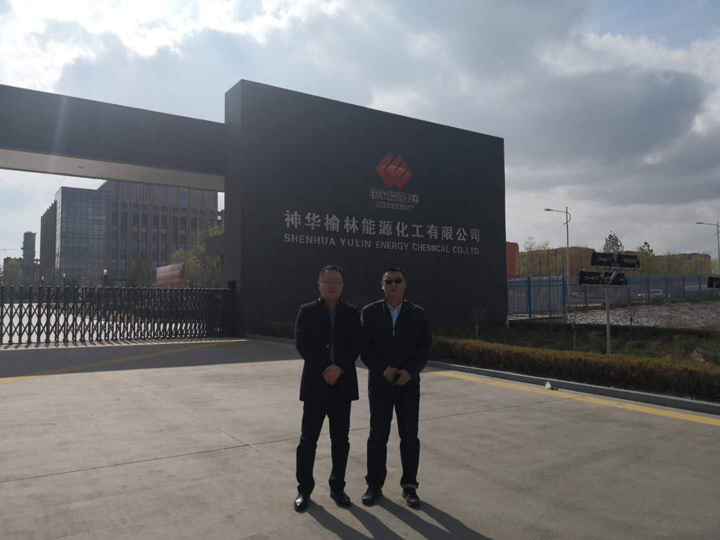 公司董事长兼党委书记赵剑平(左一)李双龙(右一)项目总监,视察神华榆林项目部