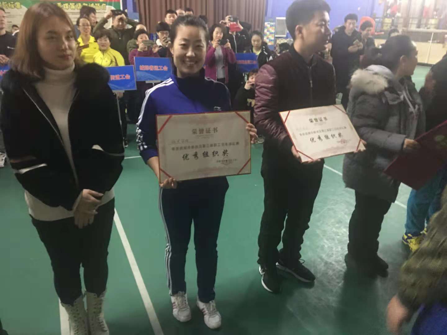 1212日比赛正式开始。首先进行的是团体赛,接下来是个人、双打等单项比赛。比赛氛围在友谊、和谐的气氛下进行。在总裁判长等工作人员的组织之下,比赛进行得紧张、有序。经过激烈的角逐,我单位田春丽在中年女子组比赛中脱颖而出,获得第六名的好成绩,打破了公司在此次比赛中无成绩获得的记录。除此之外,我单位还获得了此次比赛的“优秀组织奖”。赛后,工会领导冯主席对运动员给予了亲切的慰问,对此次比赛成果给与了极大的肯定。