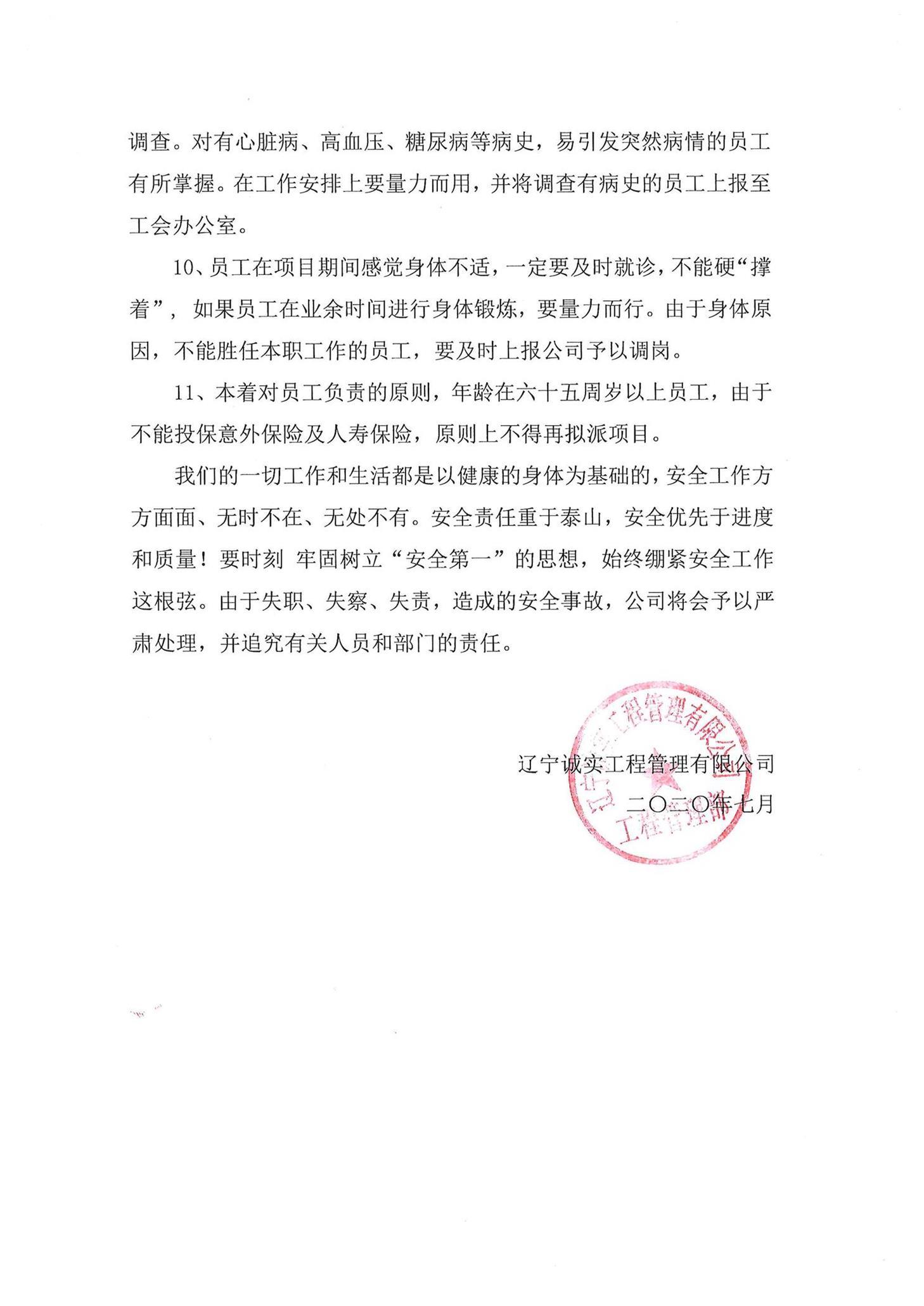 关于加强公司生产安全、生活安全的通知--工程管理部3号文件