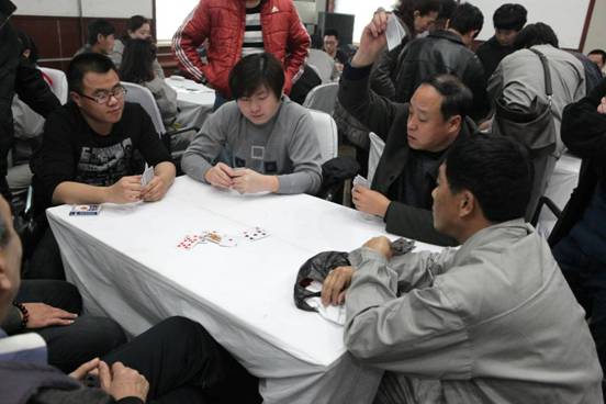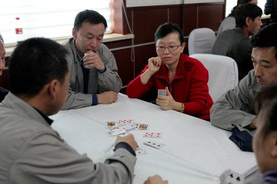 公司员工在进行扑克比赛