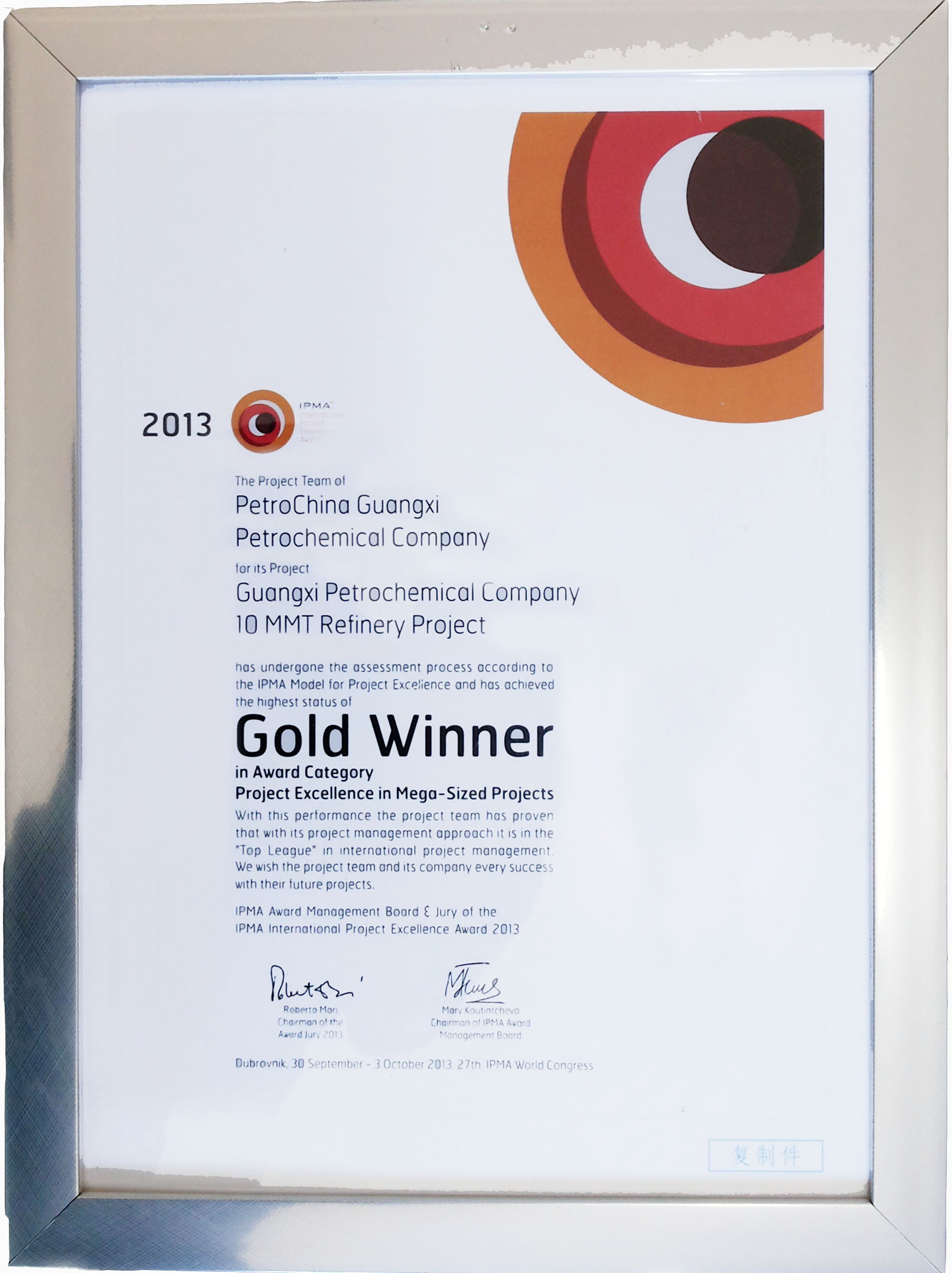 我公司承接了中国石油广西石化千万吨炼油项目,该项目荣获IPMA国际卓越项目管理金奖